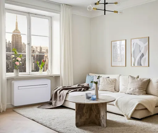 Keine Sorgen mehr wegen Genehmigungen durch Hausverwaltung oder Denkmalschutz. Für die Installation reichen zwei Öffnungen in der Wand, die außen mit unauffälligen Gittern abgedeckt werden. Keine Kupferrohre, kein Befüllen mit Kältemittel durch einen Fachmann.